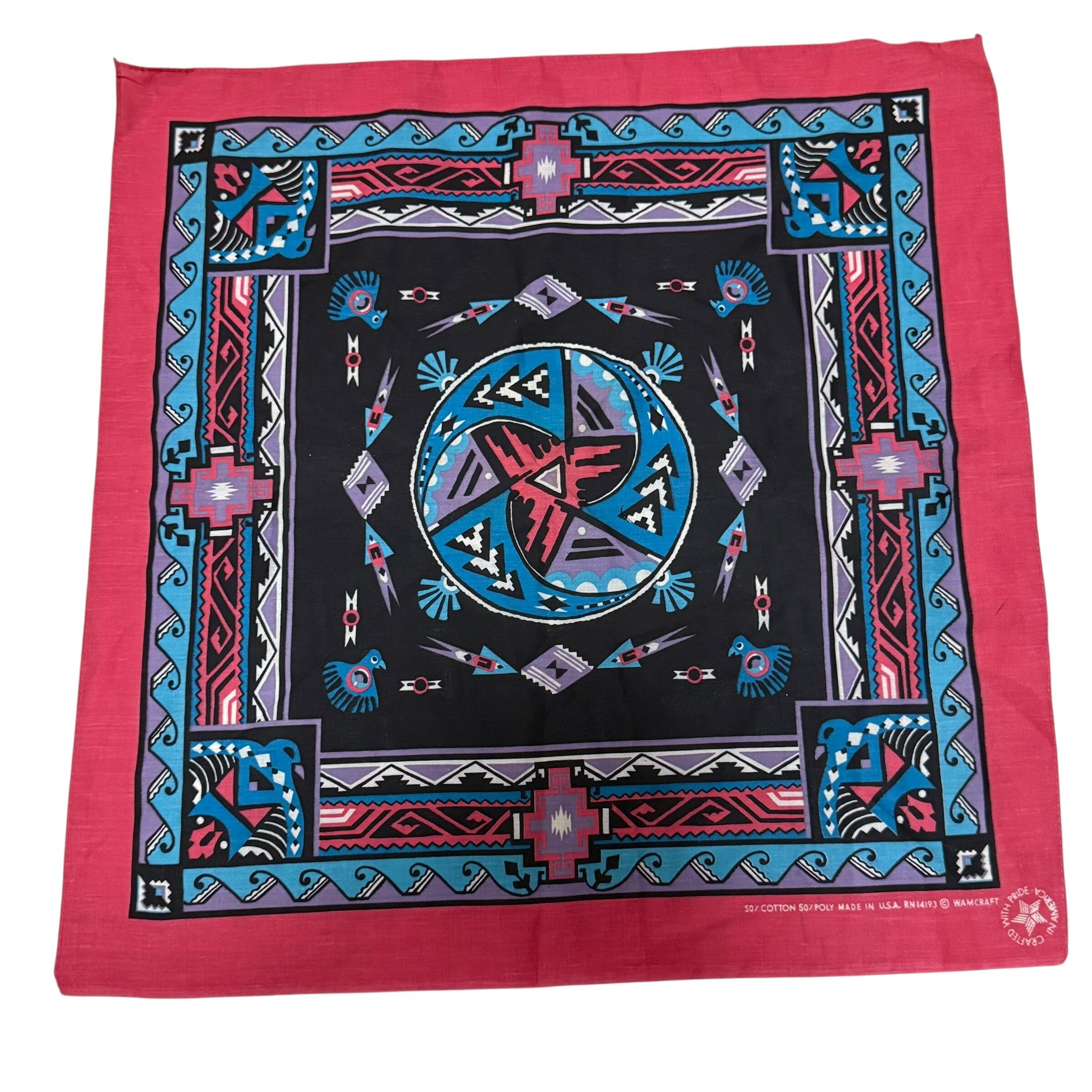 【VINTAGE Bandana A Native American pink made in USA 90s-00s Y2K ヴィンテージ バンダナ ネイティブアメリカン スカーフ 】