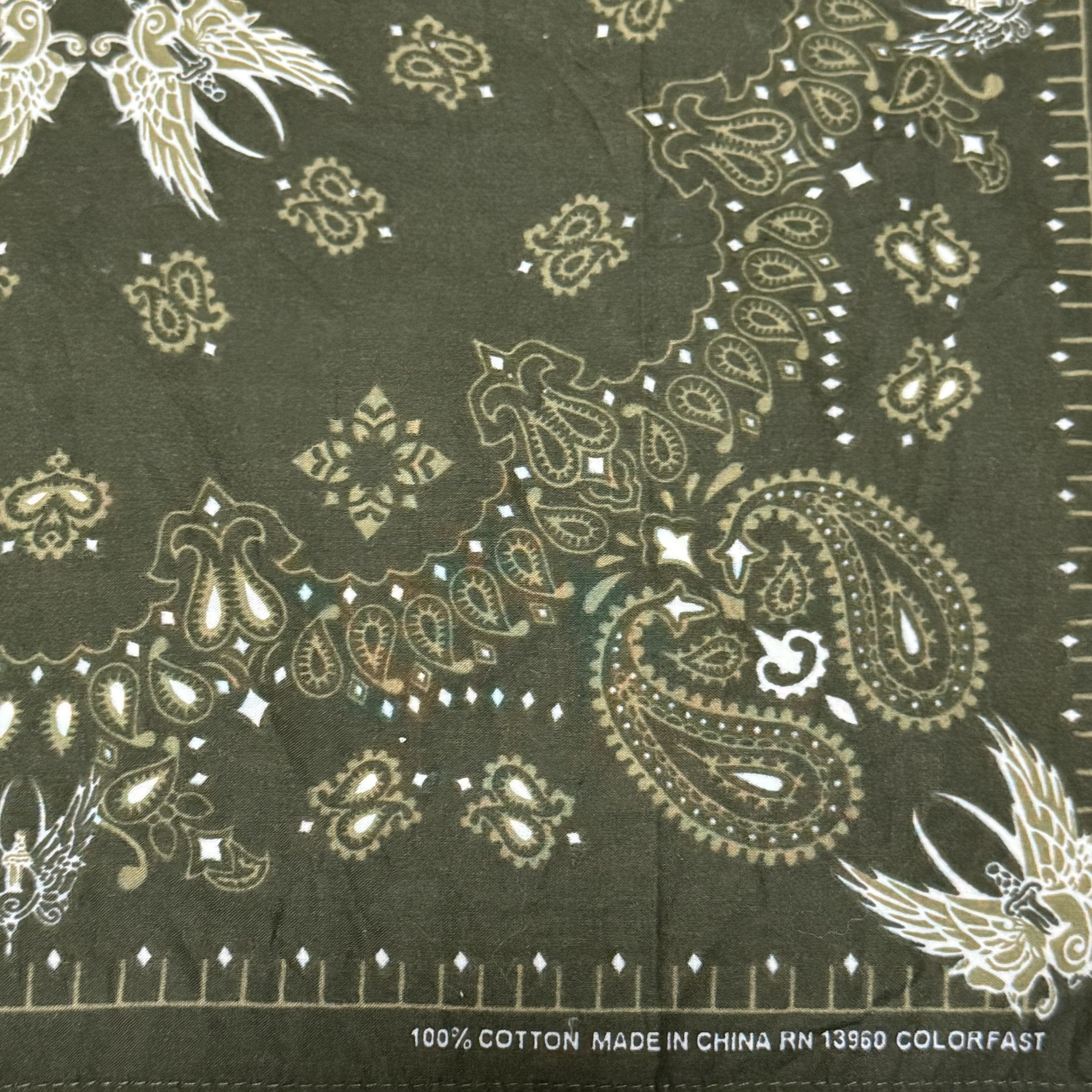 【Bandana Paisley Khaki Flower バンダナ ペイズリー 花柄 スカーフ 】 | manekikko